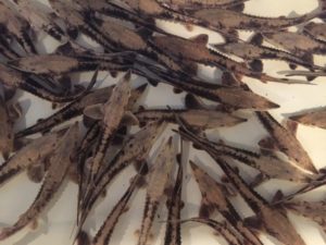 In September 2014, members observed 3-month-old fingerlings during a tour of the Grand Rapids Fish Hatchery. Hatchery staff provided a guided tour, explaining the early life history of the species, the hatchery rearing process and the role of these hatchery raised sturgeon in restoring and maintaining healthy populations in the Nelson River.