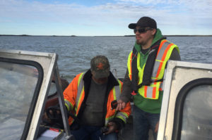 In June 2014, members of the committee traveled to the Nelson River Sturgeon Board spawn camp on the Landing River. By observing, members learned about the collection of sturgeon eggs and milt and the process by which the eggs are fertilized and sent to Grand Rapids Hatchery for incubation and rearing.