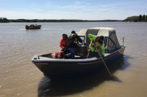 The event was hosted by Fox Lake Cree Nation (FLCN) at their beautiful Cultural Camp north of Gillam, near Fox Lake and the Limestone GS. Elders, youth, and resource users from FLCN and York Factory First Nation (YFFN), and KSNC committee members participated in the event. Activities included resource users demonstrating how to set sturgeon nets on the Nelson River, Elders filleting sturgeon while sharing stories of traditional uses, boiling and smoking sturgeon, and water quality sampling on the Nelson River.