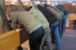 In January 2015, the KSNC provided funding to send several students from War Lake First Nation to visit the Grand Rapids Fish Hatchery. Hatchery staff showed the students how sturgeon are cared for at the facility, provided educational videos on sturgeon biology and discussed conservation efforts for the species in the province. The highlight of the visit was a relay where students participated in a race that incorporated various production activities including egg collection and stocking. The students learned about sturgeon conservation in an enjoyable tour of the hatchery, and left with a better understanding about sturgeon and the role that the hatchery has in conserving Lake Sturgeon populations in Manitoba.